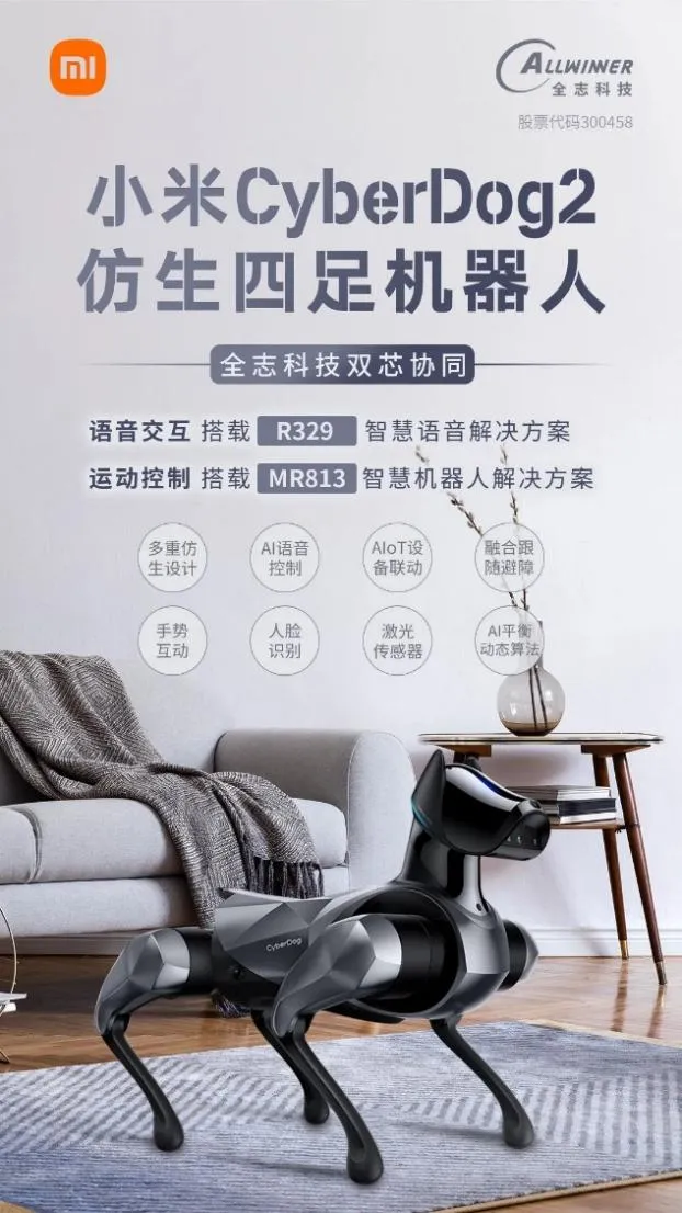 全志科技(Allwinner Technology)成立于2007年,是卓越的智能应用处理器SoC、高性能模拟器件和无线互联芯片设计厂商。其R329及MR813芯片应用于小米仿生四足机器人CyberDog(铁蛋)。全志科技的芯片采用了高效的神经网络架构,帮助机器人迅速识别并应对环境变化。为确保机器人稳定高效运行,其深度学习模型既能处理复杂视觉信息,也能实时规划动作。智能机器人强大的图像处理和自然语言处理技术支持下,也同时具备避障和语音互动功能。其集成的先进AI算法让智能机器人提供人性化的服务,让科技有了温度。